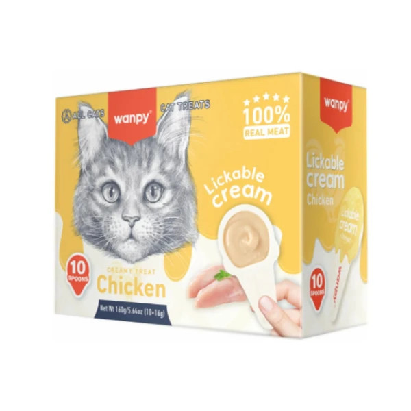 بستنی گربه ونپی مدل قاشقی طعم مرغ یک میانوعده خوشخوراک و نرم برای گربههاست که با طعم لذیذ مرغ تهیه شده است. این محصول از برند معتبر Wanpy تولید شده و با بافت کرمی و لطیف خود، برای اکثر گربهها بسیار جذاب و اشتهابرانگیز است.