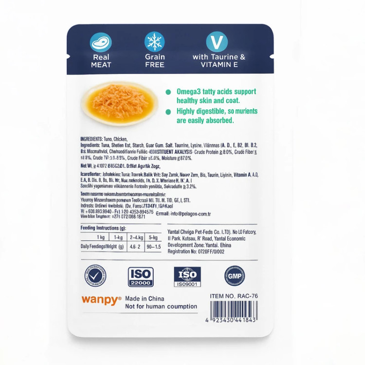 پوچ خورشتی گربه ونپی مدل انگلیسی نویس طعم تن و مرغ یک غذای مرطوب کامل و خوشخوراک برای گربههاست که ترکیب گوشت مرغ و ماهی تن آن، طعم جذاب و اشتهابرانگیزی ایجاد میکند. این محصول از برند معتبر Wanpy تولید شده و به صورت پوچ ارائه میشود تا استفاده و نگهداری آن آسان باشد.